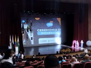 Los líderes y líderesas de nuestro Cibercolegio UCN, participan en la posesión de los Personeros, Contralores, Mediadores y Representantes de Estudiantes, que se realiza en este momento en el Teatro de la Universidad de Medellín.